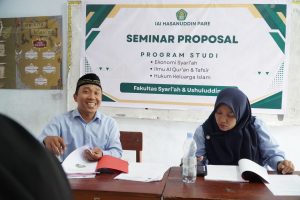 Pelaksanaan Seminar Proposal berlangsung dengan tertib dan akademis, didampingi oleh dosen penguji serta panitia pelaksana. Kegiatan ini mencerminkan komitmen IAI Hasanuddin Pare dalam menjaga mutu akademik serta membimbing mahasiswa agar mampu menghasilkan karya ilmiah yang berkualitas, sistematis, dan relevan dengan kebutuhan masyarakat.